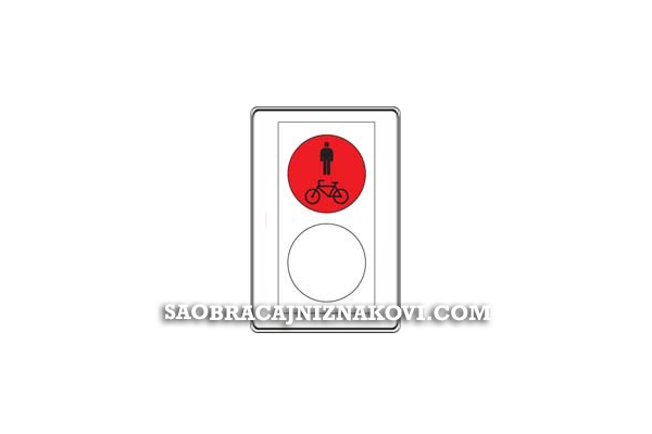 Dopunska saobraćajna svjetla - Zabranjen prolaz za pješake ili pješake i bicikliste.