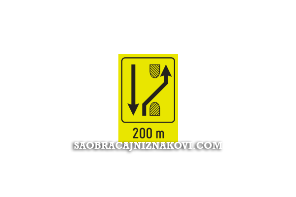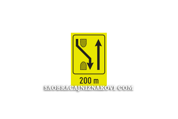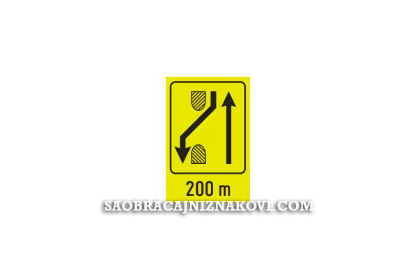 Znakovi (slika 2 i slika 3) označavaju blizinu mjesta gdje se saobraćaj sa dijela puta na kome kolovozne trake nisu fizički razdvojene odnosno na kome su odvojene samo oznakama na kolovozu, preusmjerava na put sa fizički razdvojenim kolovoznim trakama.