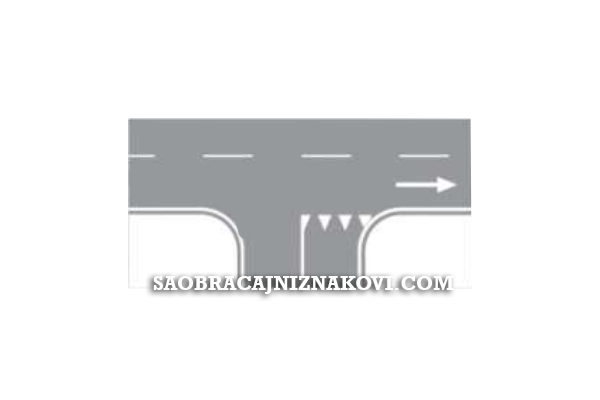 "Crte zaustavljanja - Isprekidana" označava mjesto na kojem vozač mora zaustaviti vozilo ako je potrebno propustiti vozila koja se kreću cestom s pravom prednosti prolaska.