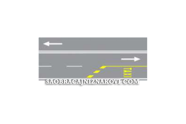 "Kose i granične crte - Kosa široka isprekidana" označava mjesto početka prometne trake namijenjene za vozila javnog prijevoza putnika.