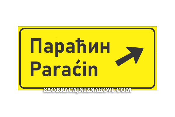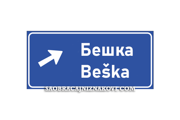 Znak "Putokaz za izlaz" na autoputu i putu sa raskrsnicama u više nivoa označava pravac kretanja do naseljenih mesta. Prvi i drugi primer znaka se postavljaju iznad kolovoza, a treći primer znaka na bankini.